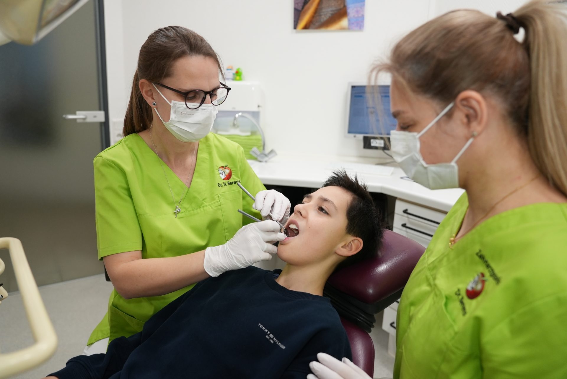 Frühzeitige Zahnpflege legt den Grundstein für ein gesundes, schmerzfreies Lächeln – ein Leben lang. Kinder benötigen besonders viel Einfühlungsvermögen, klare Erklärungen und eine Behandlung, die Vertrauen schafft. Einfühlsame Betreuung für Kinder, inklusive Behandlung von Kreidezähnen, Prophylaxe, Versiegelungen und Fluoridierung. Ziel ist eine stressfreie, frühzeitige Zahnpflege. Wir erklären jedem Kind verständlich jeden Schritt der Behandlung und schaffen so eine vertrauensvolle Umgebung. Mit sanften Methoden fördern wir ein positives Zahnarzterlebnis. Durch regelmäßige Kontrollen unterstützen wir die gesunde Entwicklung der bleibenden Zähne. Des Weiteren bieten wir eine zielgerichtete Ernährungsaufklärung für Kinder und Eltern an.